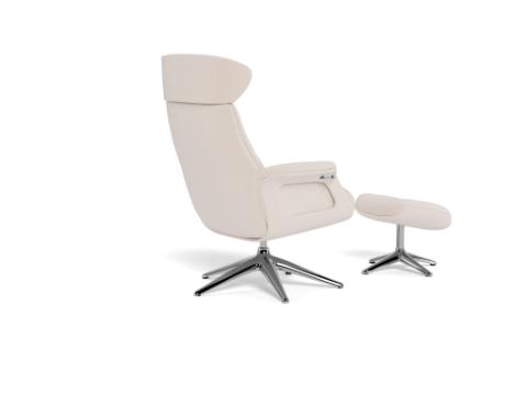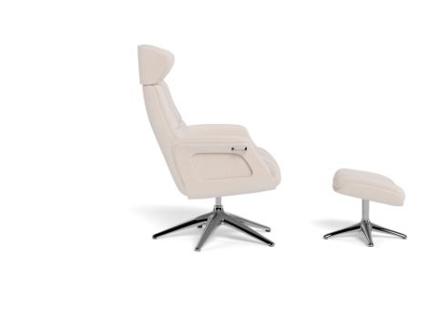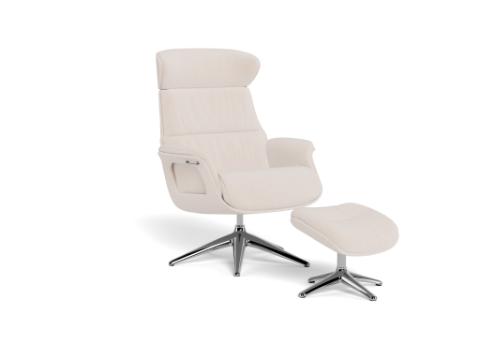 | Description | Clement is designed with a gas spring mechanism which lets you change positions smoothly and effortlessly. The footrest will ensure you a calm place to relax and unwind. The headrest is adjustable in height and angle, to get the best position for reading, watching TV or relaxing. Try the FLEXLUX creator to see the different colors. The shell of the chair is available in different surfaces and colors or as fully upholstered. The elegant aluminum legs are available in black, polished aluminum or wood decor. |