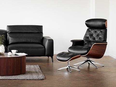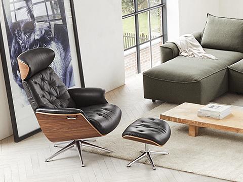 | Description | Volden is designed with a gas spring mechanism which lets you change positions smoothly and effortlessly. The footrest will ensure you a calm place to relax and unwind. The headrest is adjustable in height and angle, to get the best position for reading, watching TV or relaxing. The shell of the chair is available in different plywood surfaces and colors or as fully upholstered. The elegant aluminum legs are available in black or polished aluminum. |