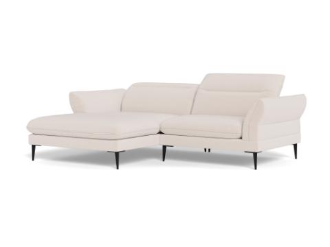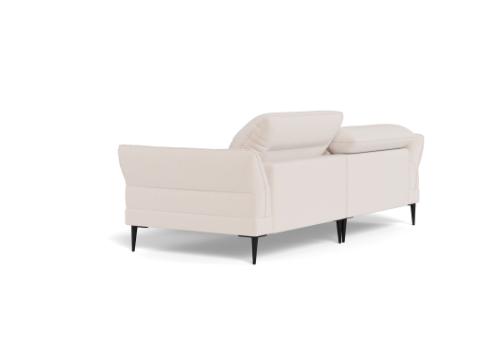 Salino is Italian inspired sophistication! This sofa offers manually adjustable head rests for each seat for additional neck support. The back and seat cushions are fixed. The arms have soft rounded shapes that contribute to the elegance of this sofa. The sofa is available with beautiful organic shaped black metal legs that fit the sofa perfectly.