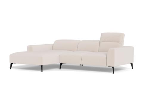 Voluzzi is Italian inspired sophistication. This sofa offers manually adjustable head rests for each seat for additional neck support. The back and seat cushions are fixed. The back cushions are made with hyper-soft foam and cut with special 3D technology to achieve the best comfort and durability. The arms have soft rounded shapes that contribute to the elegance of this sofa. We offer optional lumbar cushions for even more support. The Voluzzi sofa has beautiful organic shaped black metal legs.