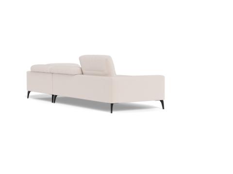 Voluzzi is Italian inspired sophistication. This sofa offers manually adjustable head rests for each seat for additional neck support. The back and seat cushions are fixed. The back cushions are made with hyper-soft foam and cut with special 3D technology to achieve the best comfort and durability. The arms have soft rounded shapes that contribute to the elegance of this sofa. We offer optional lumbar cushions for even more support. The Voluzzi sofa has beautiful organic shaped black metal legs.